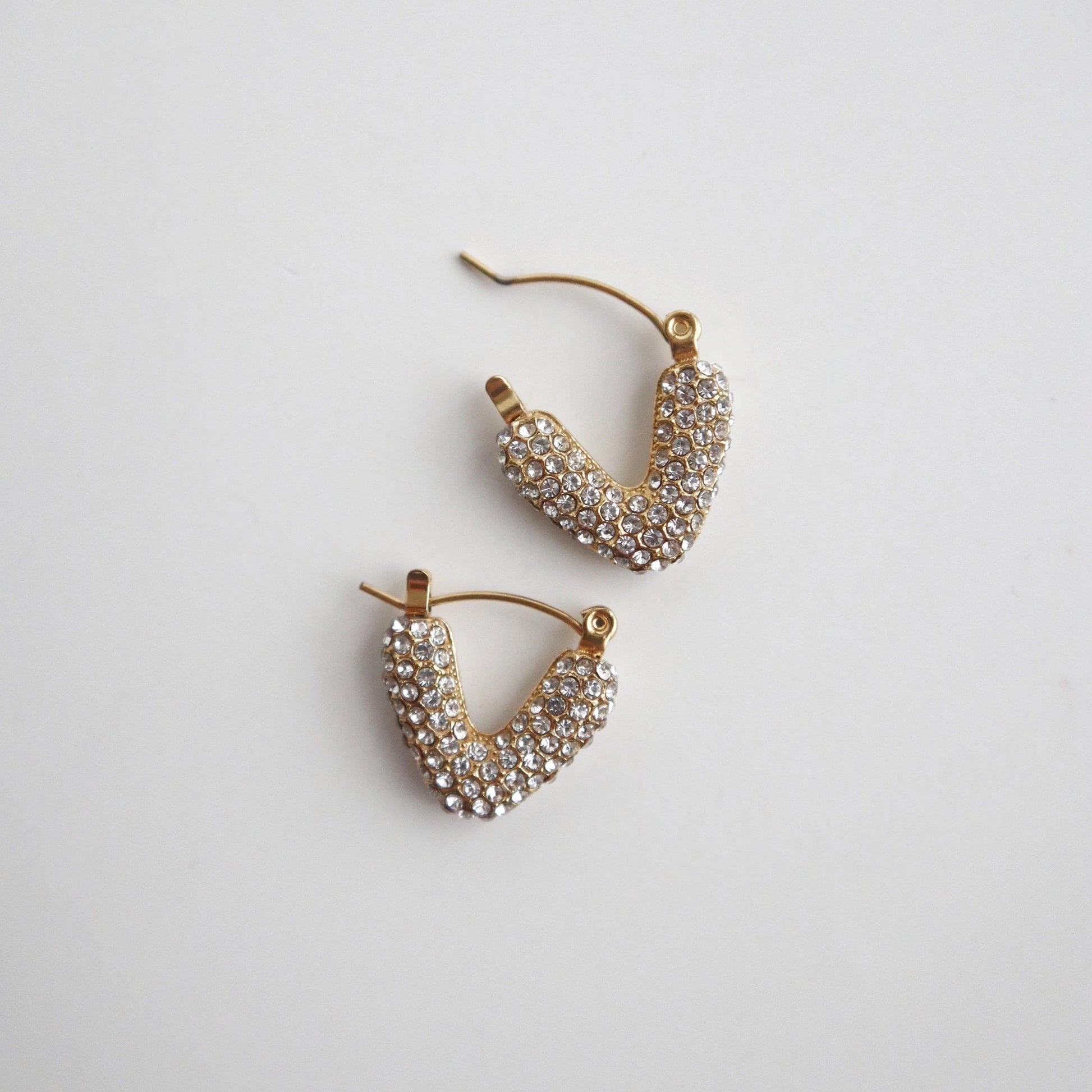 Get ready to stand out with our Alana Hoops! These stunning V-shaped pave hoops are perfect for adding a touch of elegance to any outfit. Their small size makes them versatile for any occasion.