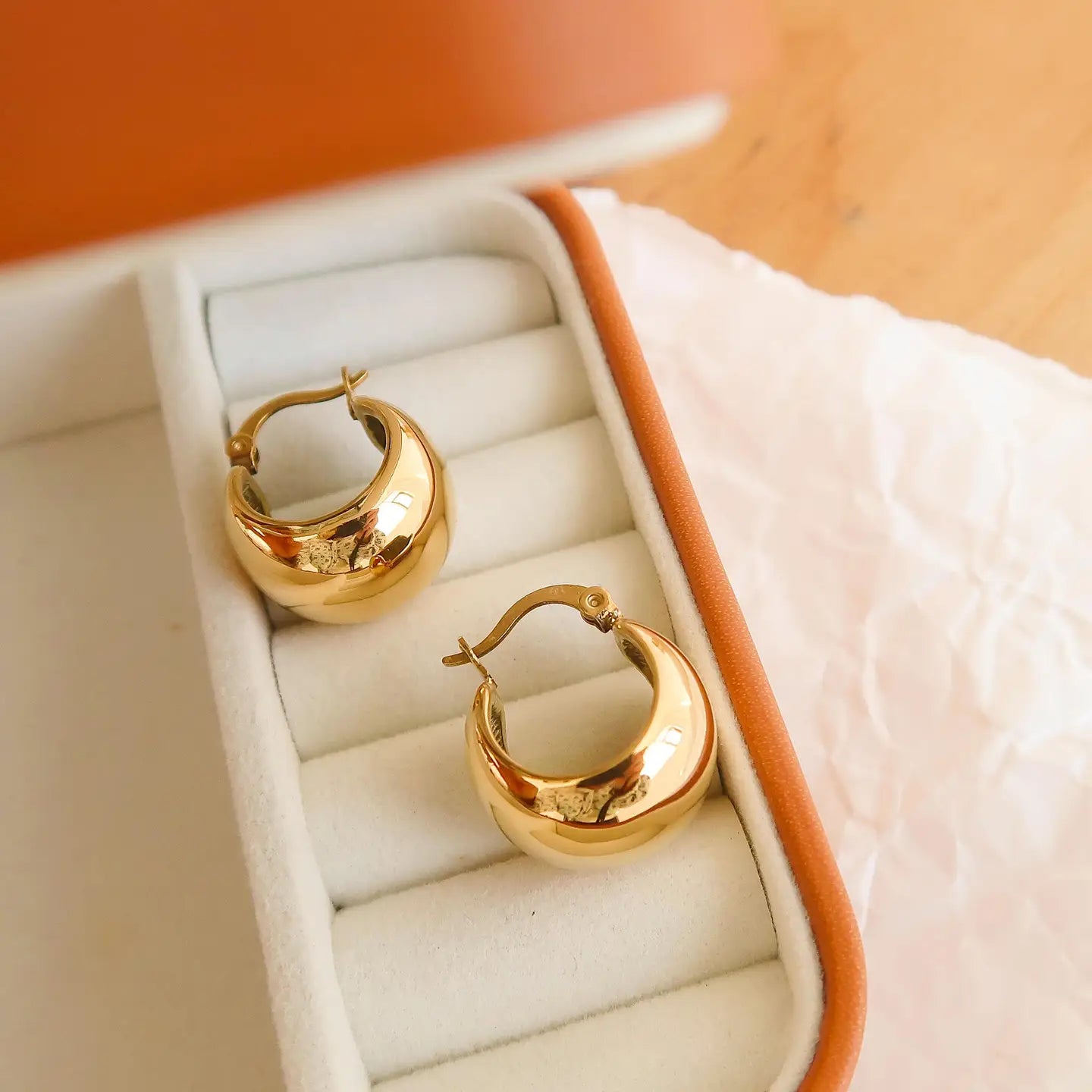 18K Gold Non-Tarnish Classic Round Huggie Earring