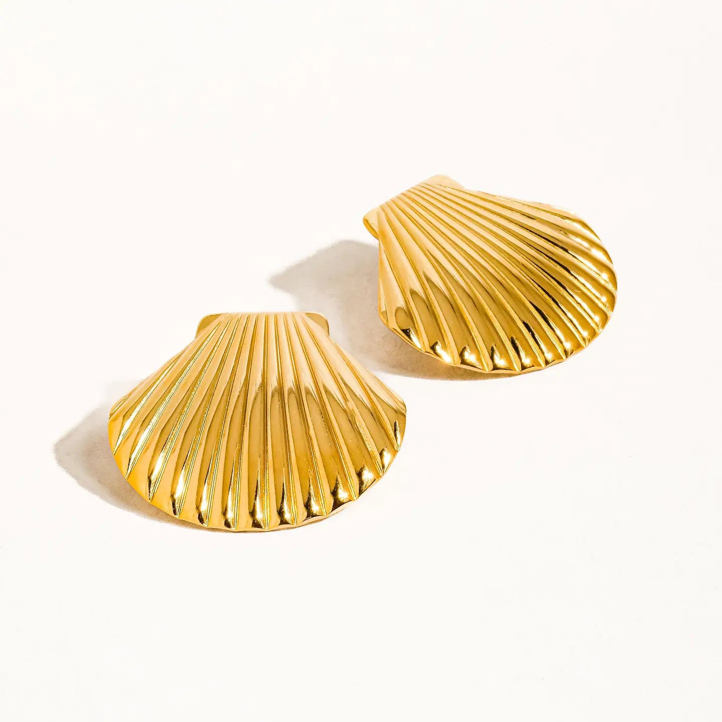 18K Gold Non-Tarnish Shell Studs 18K Gold Plating Stainless Steel