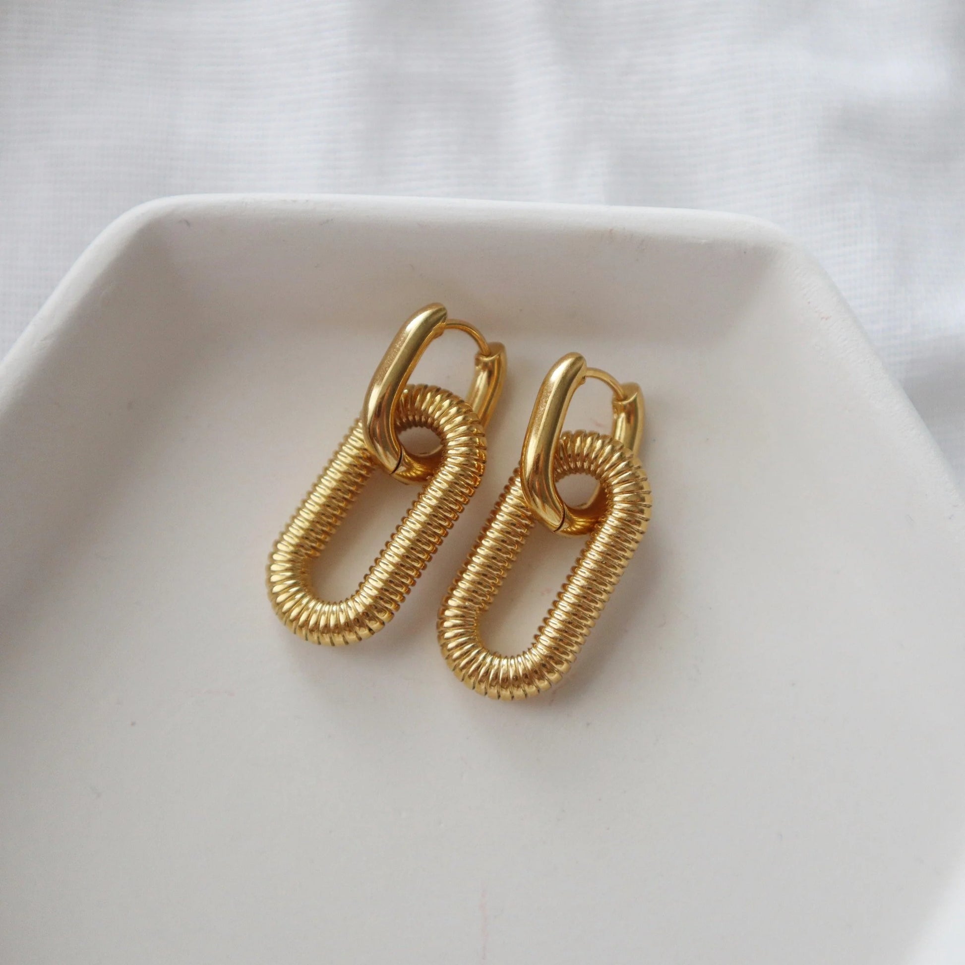 These stunning earrings feature a smooth link paired with a larger textured link, creating a sophisticated look. Show off your personality and make a statement with the Ivy Drop Earrings.