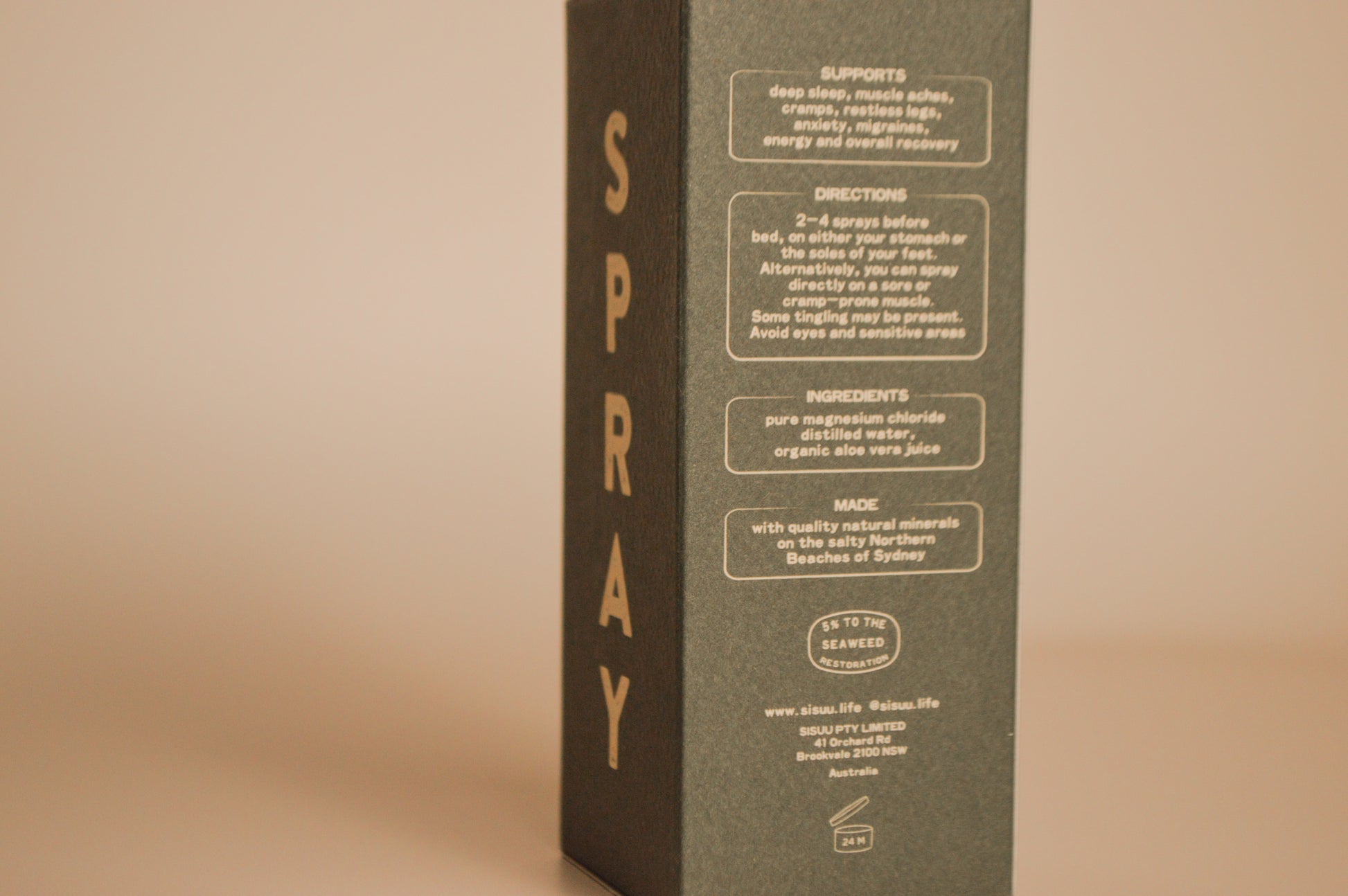Our famous non sticky & easy to absorb Magnesium Oil Dissolve the day with Sisuu’s Rest & Recovery spray and let the power of nature guide you to deeper sleeps, blissful dreams and revitalised muscles.