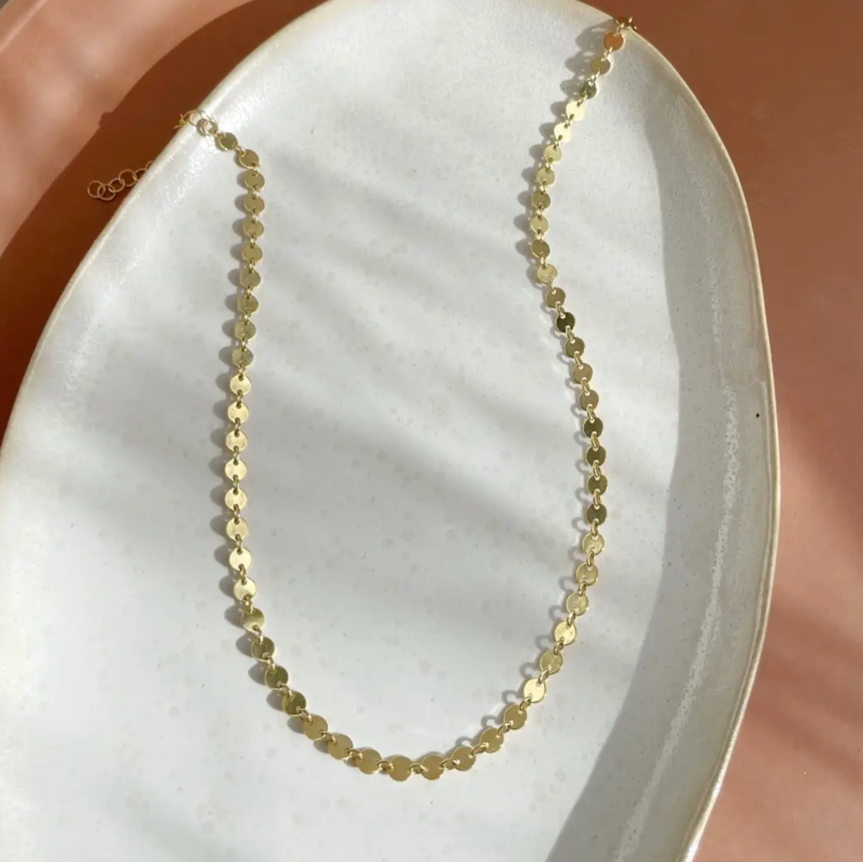 The choker's high shine makes this piece a major statement maker. We love the Starlight Choker on its own or layered with other necklaces like our Dot + Dash Choker and Sylvie Lariat. DETAILS Adjustable Spring Hook Clasp Standard Choker length is 13" (can adjust up to 14.5") Each piece of Token Jewelry is handmade to order in our Eau Claire, WI studio. Please allow for natural variations that may occur. Each piece of Token Jewelry is handmade to order in our Eau Claire, WI studio. Please allow for natural variations that may occur.
