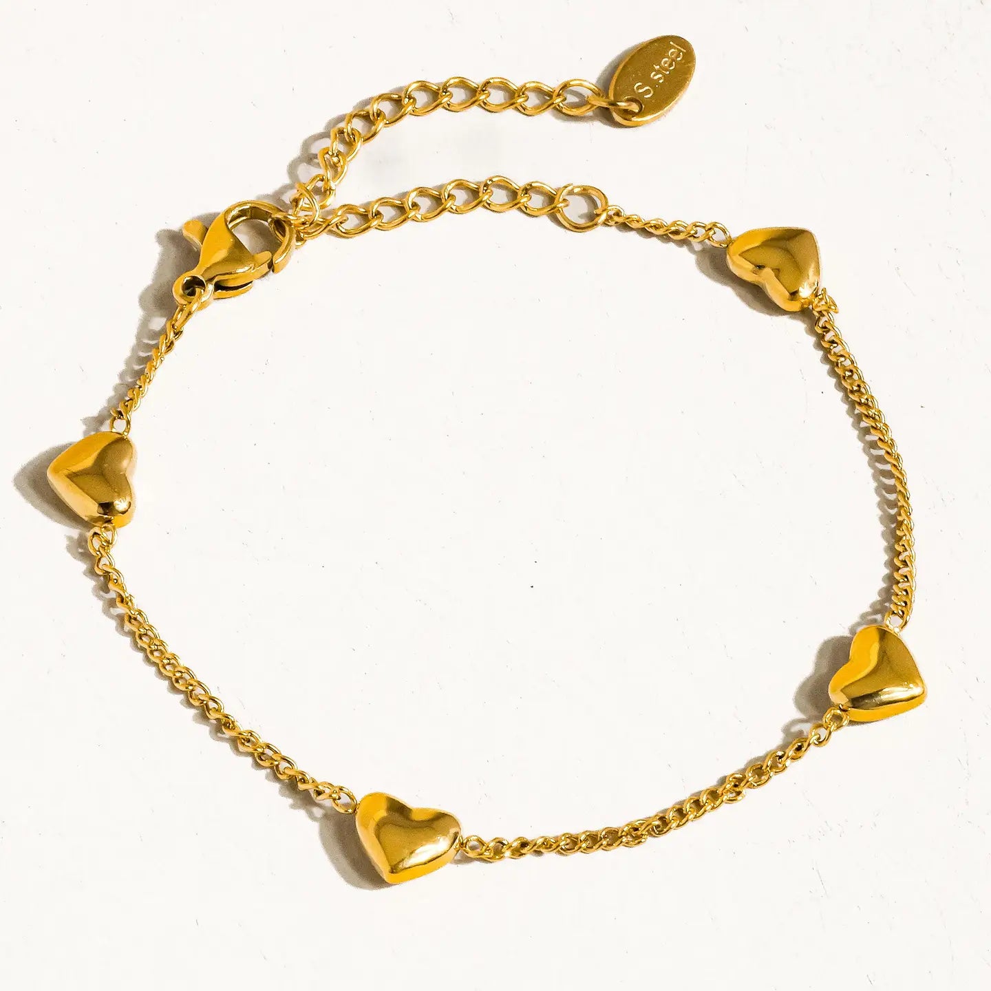 18K Gold Non-Tarnish Petite Heart Bracelet